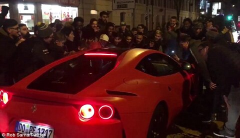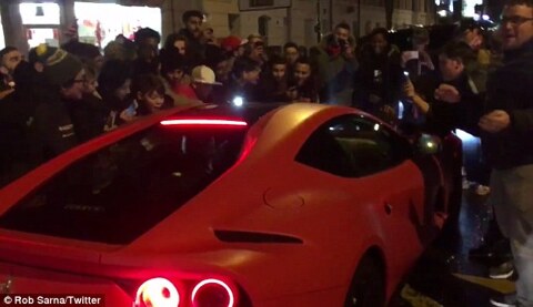 Following the action-packed Premier League clash, Arsenal supporters mobbed the Gabon striker as he drove out of the Emirates.